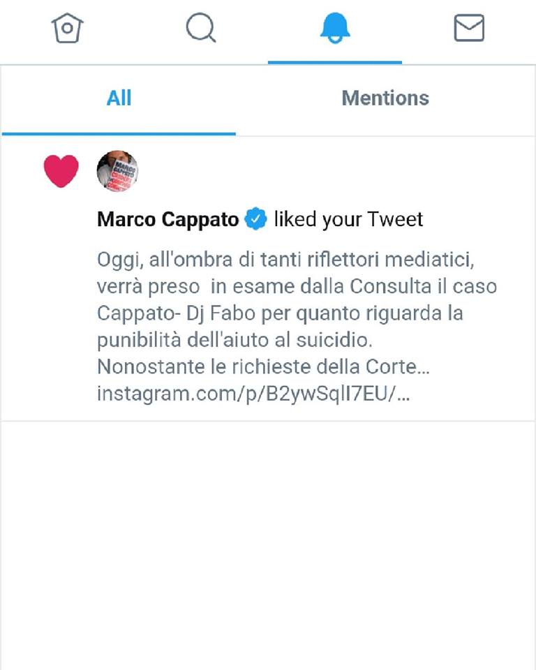 Contento e fiero di aver sollecitato la curiosità del protagonista della vicenda, Marco Cappato, il quale mi ha ricompensato con un like sulla pagina Twitter sotto il precedente post.