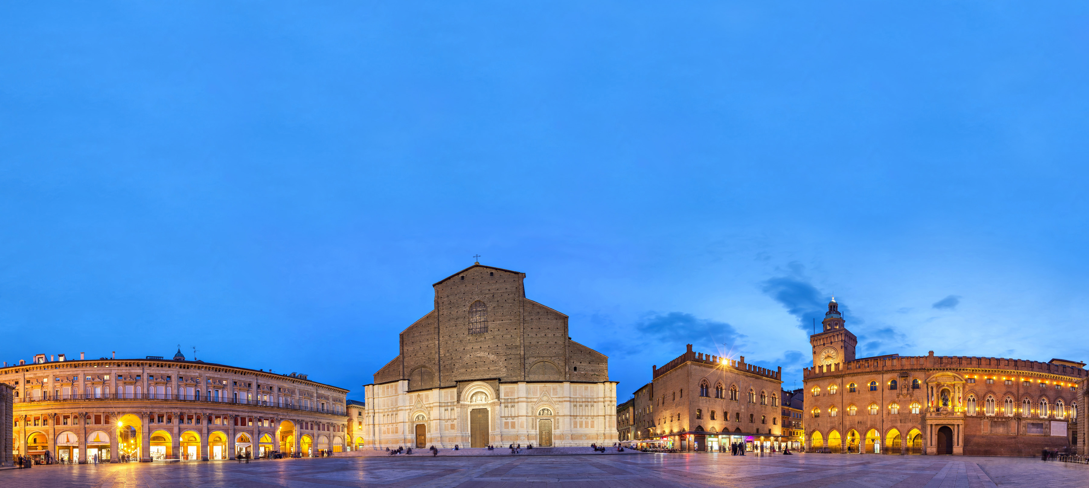 C’è una magia nei lastricati e nell’aria di queste piazze, in primis nella principale: Piazza Maggiore. Un luogo magico incorniciato dalla bellissima San Petronio che per leggenda pare sia incompleta a causa di un prosciugamento di fondi all’ora destinati per i lavori, a Palazzo d’Accursio e Palazzo Re Enzo. Una cornice di edifici che mantiene caloroso un ambiente dispersivo e allieta la vista di chiunque si segga per terra ad ammirare quanto è offerto. Una piazza che ospita uno dei cinema gratuiti più importanti d’Italia: l’anno scorso è venuto “un certo” Francis Ford Coppola a salutare la città e ad inaugurare la versione restaurata e completa di Apocalypse Now.